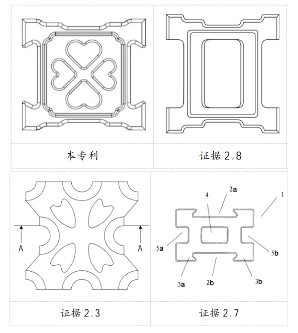 最高人民法院二审认为:随意划分的点、线、面原则上不属于可用于组合的现有设计特征。如果对应部分的设计已存在较大差别,再判断是否具有组合启示已无实际意义;如果特定组合方式超出一般消费者的知识水平和对相关产品的了解程度,则一般应认为不存在组合启示。具体到本案而言:首先,关于现有设计特征的确定。证据2.7的楔形榫槽两边分别设置有左、右连接结构,该连接结构中的突起部分即为被诉决定所述的“燕尾槽”。前述突起设计仅为证据2.7连接结构的组成部分之一,故被诉决定认定的“燕尾槽”特征属于从证据2.7中随意划分、截取所得出的部分,不是物理上或者视觉上可自然区分的设计。在本专利并非局部外观设计的情况下,该部分不能作为设计特征加以组合。其次,关于对应部分设计是否相同或者仅存在细微差别的判断。从设计特征上看,本专利正面中心处设置有对称分布的两大两小共四个心形孔,而证据2.8正面中心处仅有一个较大的方形通孔,两者设计特征的差异较大。从视觉效果上看,本专利给人以圆润、柔和、舒缓、方正的感觉,而证据2.3给人以瘦长、尖锐、局促、动态的感觉。基于前述诸多不同点,无论2.3与证据2.8是否存在组合启示,本专利相对于证据2.3、证据2.8的组合已具有明显区别。最后,关于是否存在组合启示的判断。从设计风格上看,证据2.3的四个心形孔均为细长状,呈现出轻盈纤瘦的风格,而证据2.8的方形通孔较为圆润,呈现出宽厚饱满的风格,两者并不协调统一。从组合难易程度上看,如果用证据2.3的心形孔替换证据2.8的通孔,则需要先行对证据2.8的通孔进行填充,且心形通孔的排列方式与证据2.8的整体形状并不适配。一般消费者很难能够将证据2.3与证据2.8简单拼凑起来得到和本专利实质相似的外观设计。综上,本专利权应当维持有效。